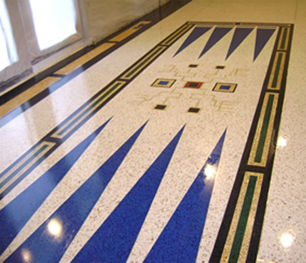Terrazzo flooring has a long and rich history that dates back over 1500 years. Terrazzo, from the Italian word for terraces, is one of the original recycled products — created centuries ago by Venetian workers utilizing the waste chips from slab marble processing. Today terrazzo flooring continues to provide the ultimate in durability and low maintenance, typically lasting the life of the building. The combination of beauty, durability, and low maintenance has led to a renaissance in the use of terrazzo over the past decade. The demand for terrazzo is increasing in many markets, from performance driven institutions such as schools, airports, and hospitals; to the designer driven markets of retail and commercial buildings. Terrazzo is the ultimate choice when evaluating finishes on a life cycle basis.
