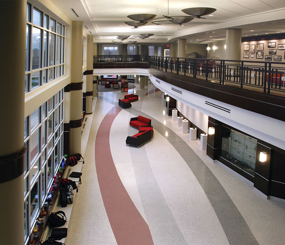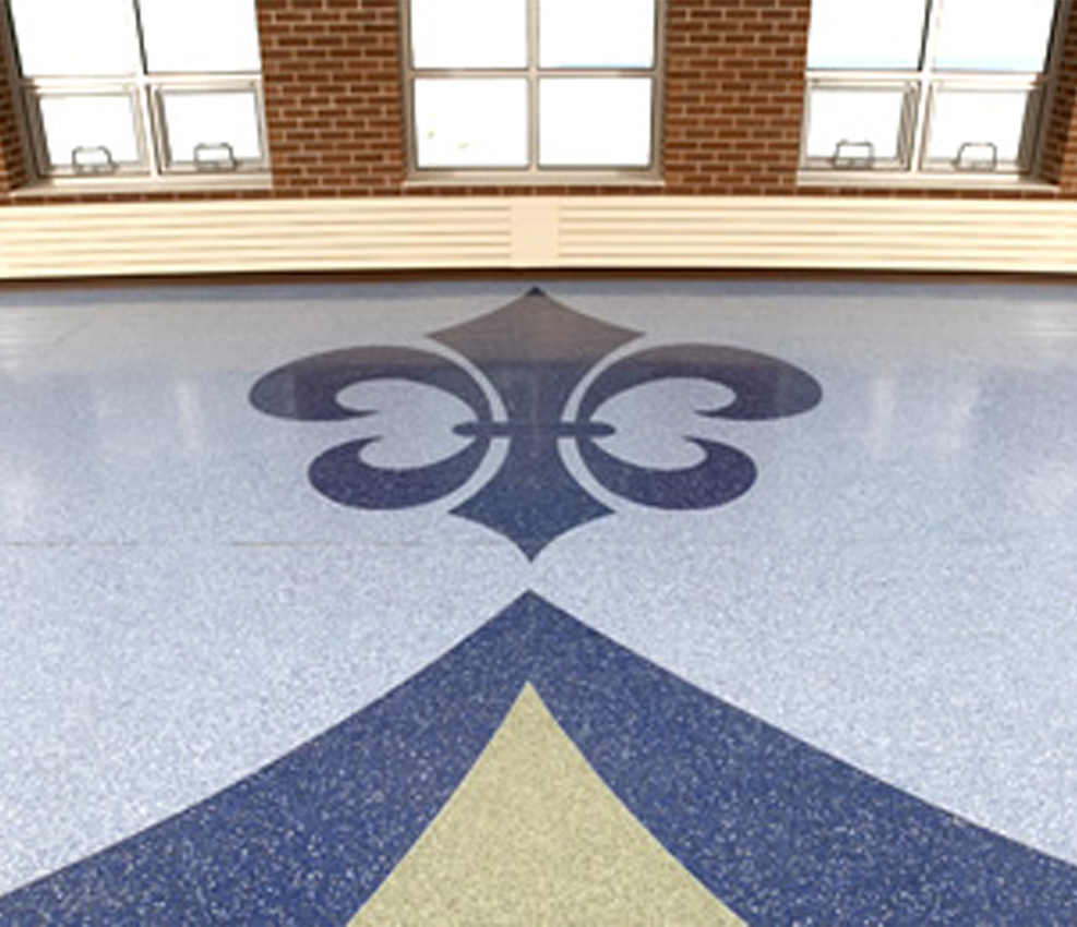 Longevity, durability and design are what is always needed for flooring in educational buildings. Items such as school logos and architectural designs within a terrazzo floor can give a school that extra bit of beauty to excite the student population and stimulate the spirit in each supporter. Terrazzo is perfect for Educational Buildings such as the following: Colleges/Universities, Libraries, Residential Dormitories, K-12 Schools, etc.. Please contact your local CSTA member for more information on how Terrazzo can fit your Education Building needs.